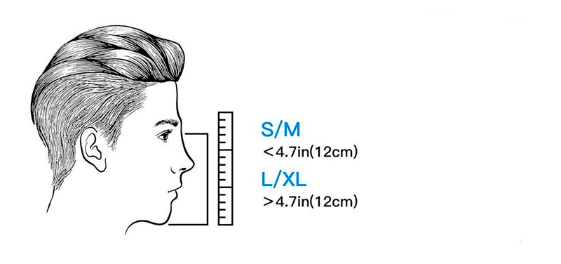 - Розмір: S/M (відстань між переніссям і нижньою частиною підборіддя менш ніж 12 см)