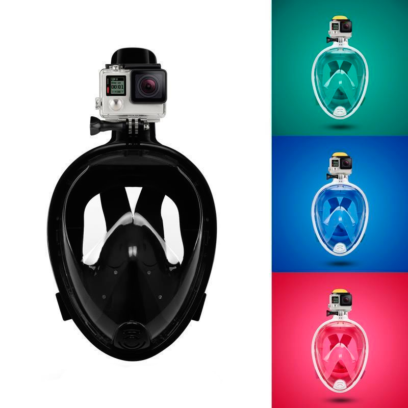 Маска повнолицева для плавання снорклінгу S/M, 180° з кріпленням для камери